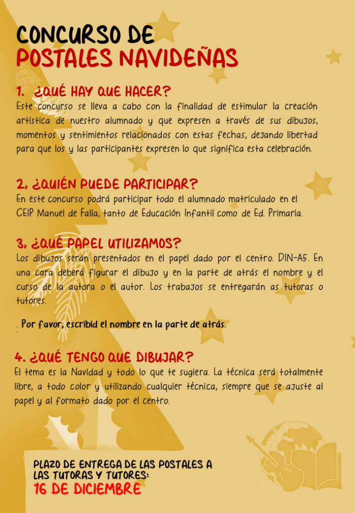 Un año más lanzamos el Concurso de Postales de Navidad desde el área de Educación Plástica. Aquí tenéis las instrucciones: