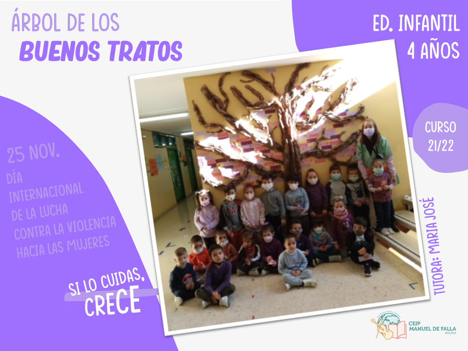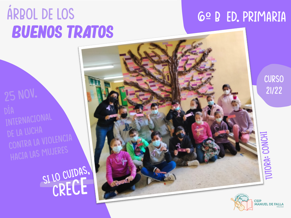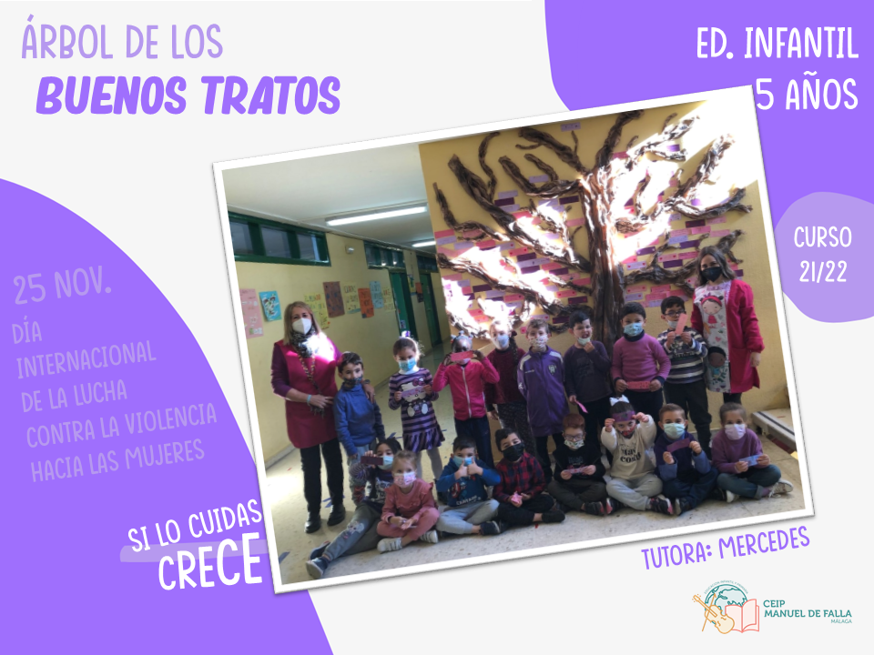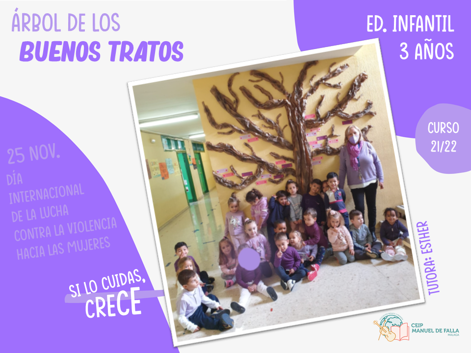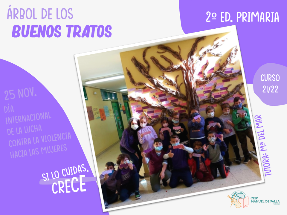 Con la colaboración de la Asociación de Padres y Madres del centro, «AMPA La Paloma», a lo largo del día 25, los diferentes niveles subieron a colocar en el árbol sus mensajes en el «Árbol de los buenos tratos», una creación conjunta con mensajes positivos de respeto, convivencia y cuidado.