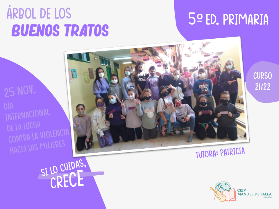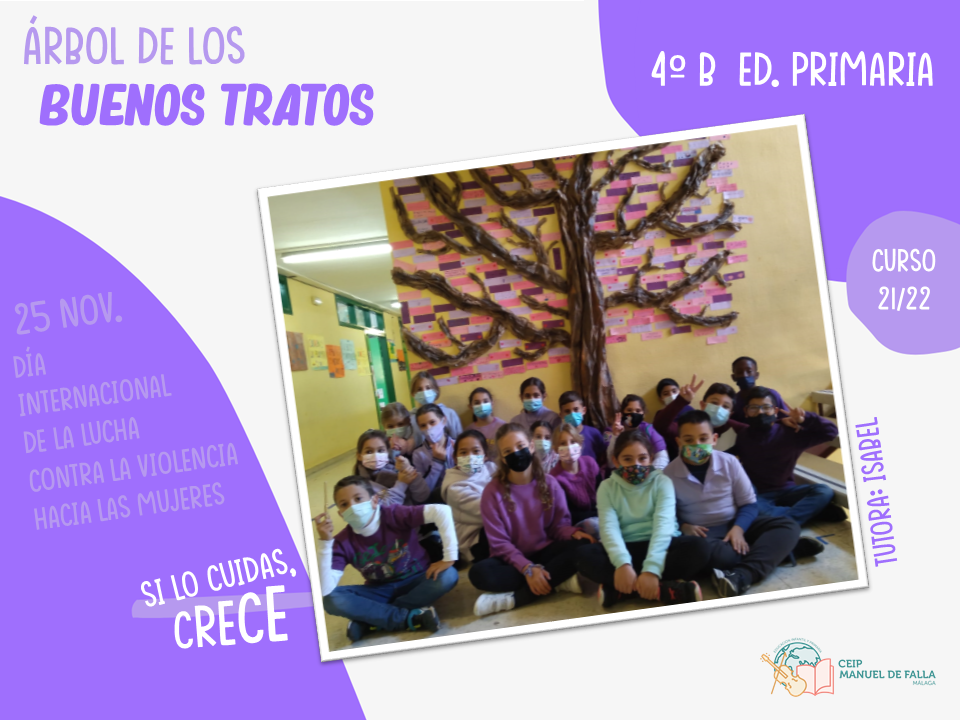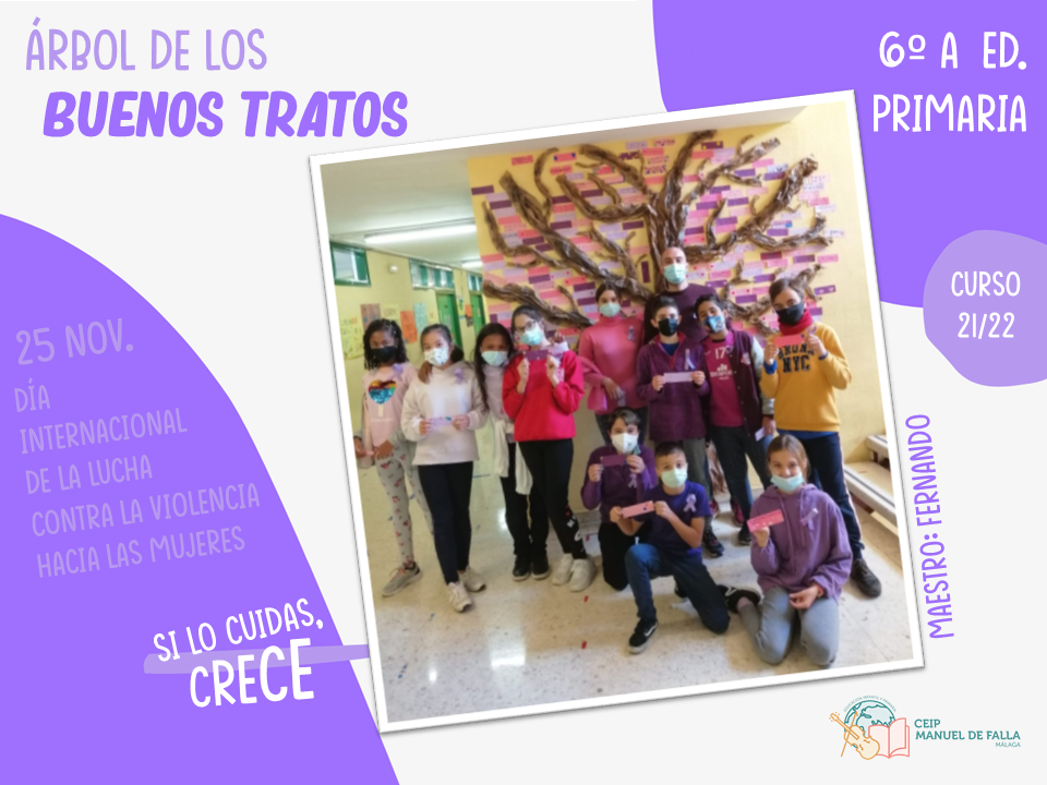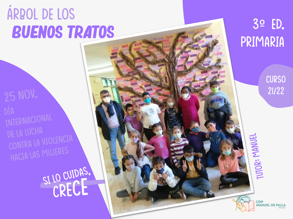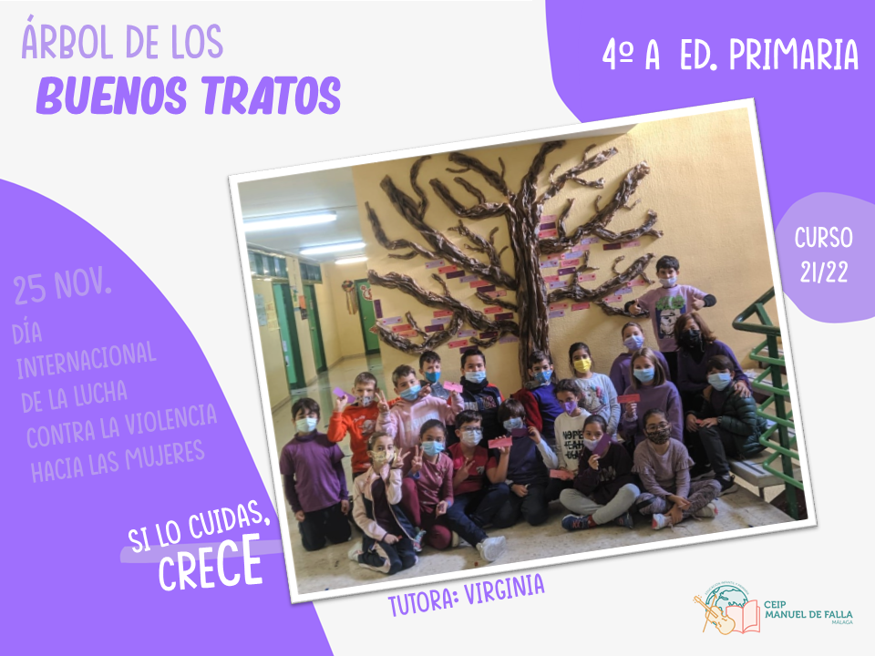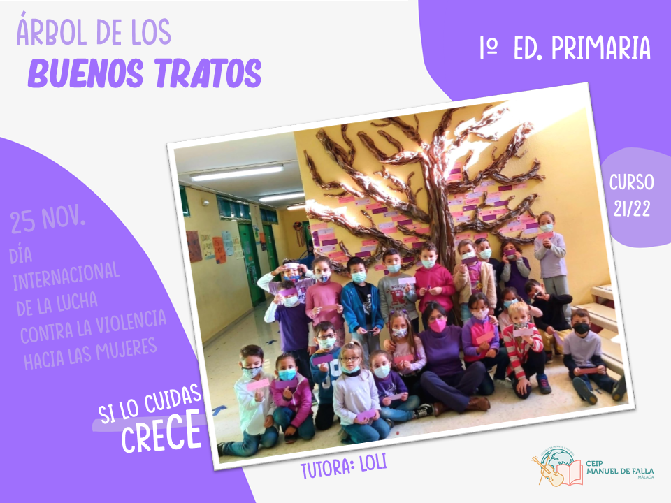 Con la colaboración de la Asociación de Padres y Madres del centro, «AMPA La Paloma», a lo largo del día 25, los diferentes niveles subieron a colocar en el árbol sus mensajes en el «Árbol de los buenos tratos», una creación conjunta con mensajes positivos de respeto, convivencia y cuidado.