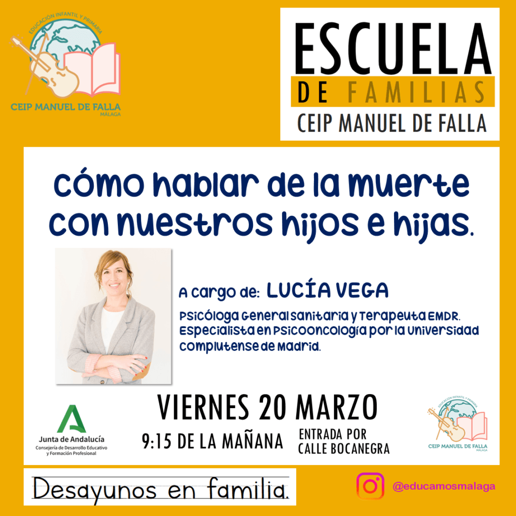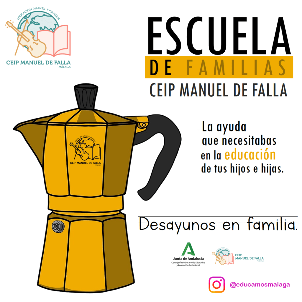 - La Escuela de familias del CEIP MANUEL DE FALLA es un programa destinado a fortalecer a las familias ofreciéndoles estrategias y pautas para mejorar la educación de sus hijos y hijas. Es la oportunidad de compartir vivencias, analizar y reflexionar para buscar alternativas de solución a los problemas comunes de la mano de especialistas en la materia que resolverán todas las dudas que se planteen en las sesiones.